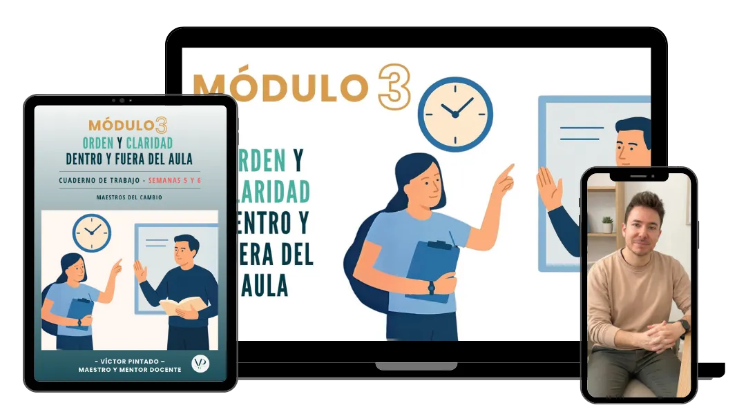 👉🏻 Aprenderás a ejercer autoridad consciente con estrategias prácticas para reducir la disrupción, ganar respeto y que la clase te escuche a la primera.